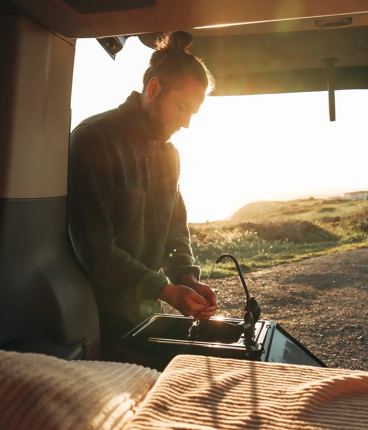 Ya sea en unas relajantes vacaciones de camping, en su furgoneta, en su puesto de venta ambulante o en la obra, nuestro lavabo móvil es su fiel compañero.